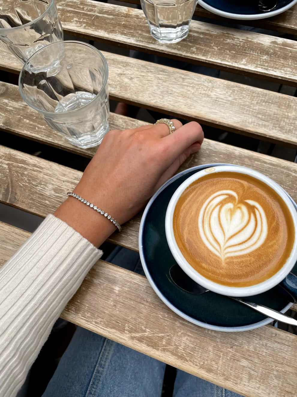 Dress up your style with out Box tennis chain set. Silver Plated with cubic zircon stainless steel and tarnish free.