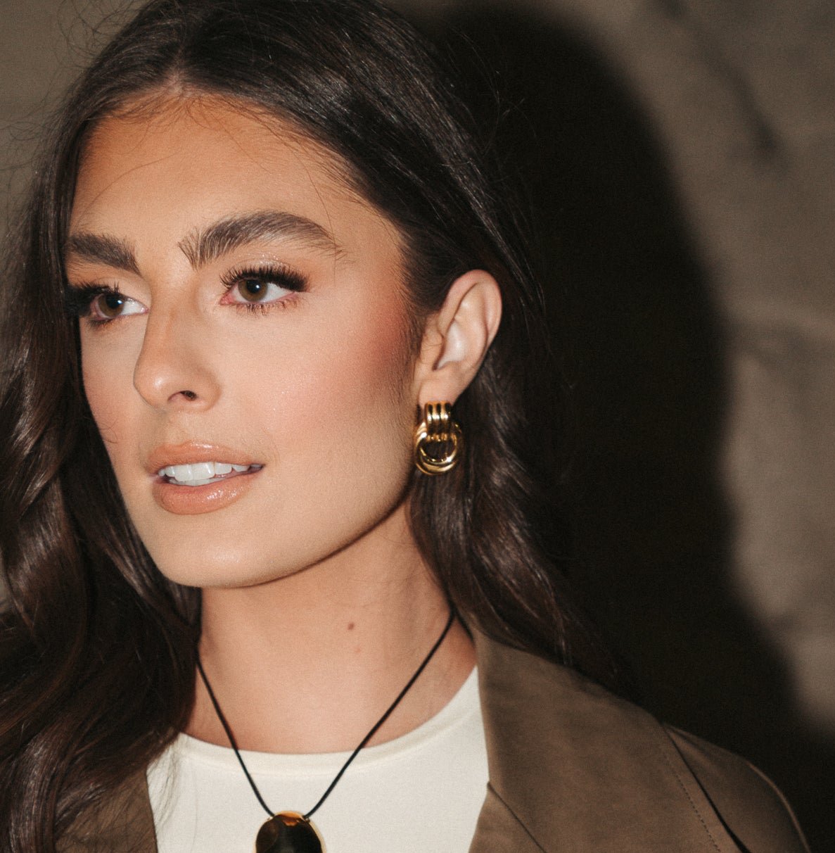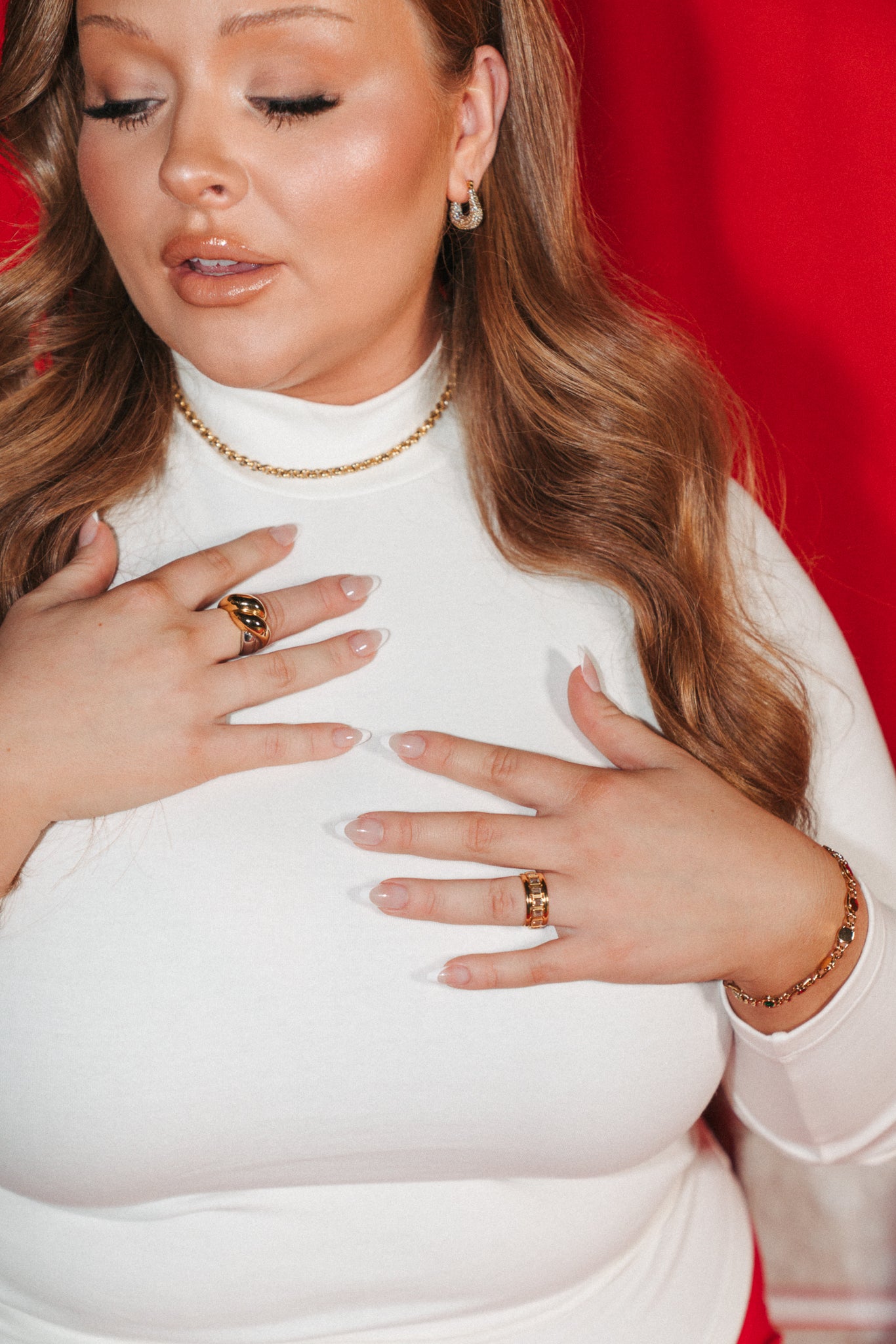 The Cashmere Set includes the Margot Hoops in your choice of Gold or Mixed Metal, the Hardware Chain, and the Oliver Band.