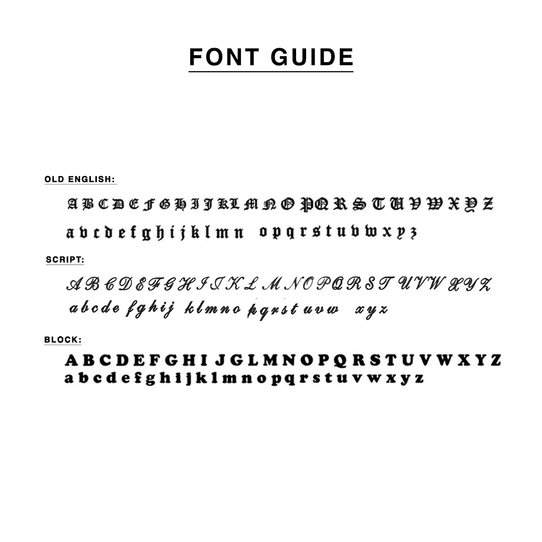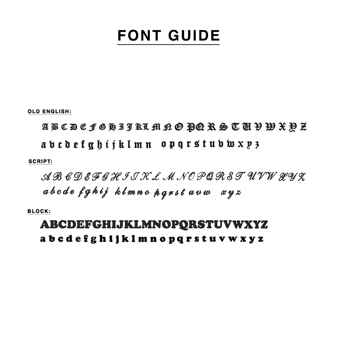 - Old English, Script, or Block font