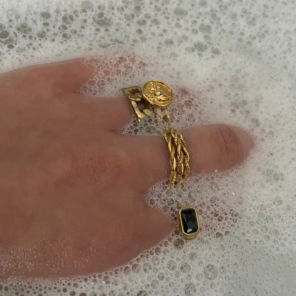 Elevate your stack with our essentila ring set. Comes with one Essential Band ring, One Simple stacked ring and one Essential Brained Ring. Choose your size for each ring.
