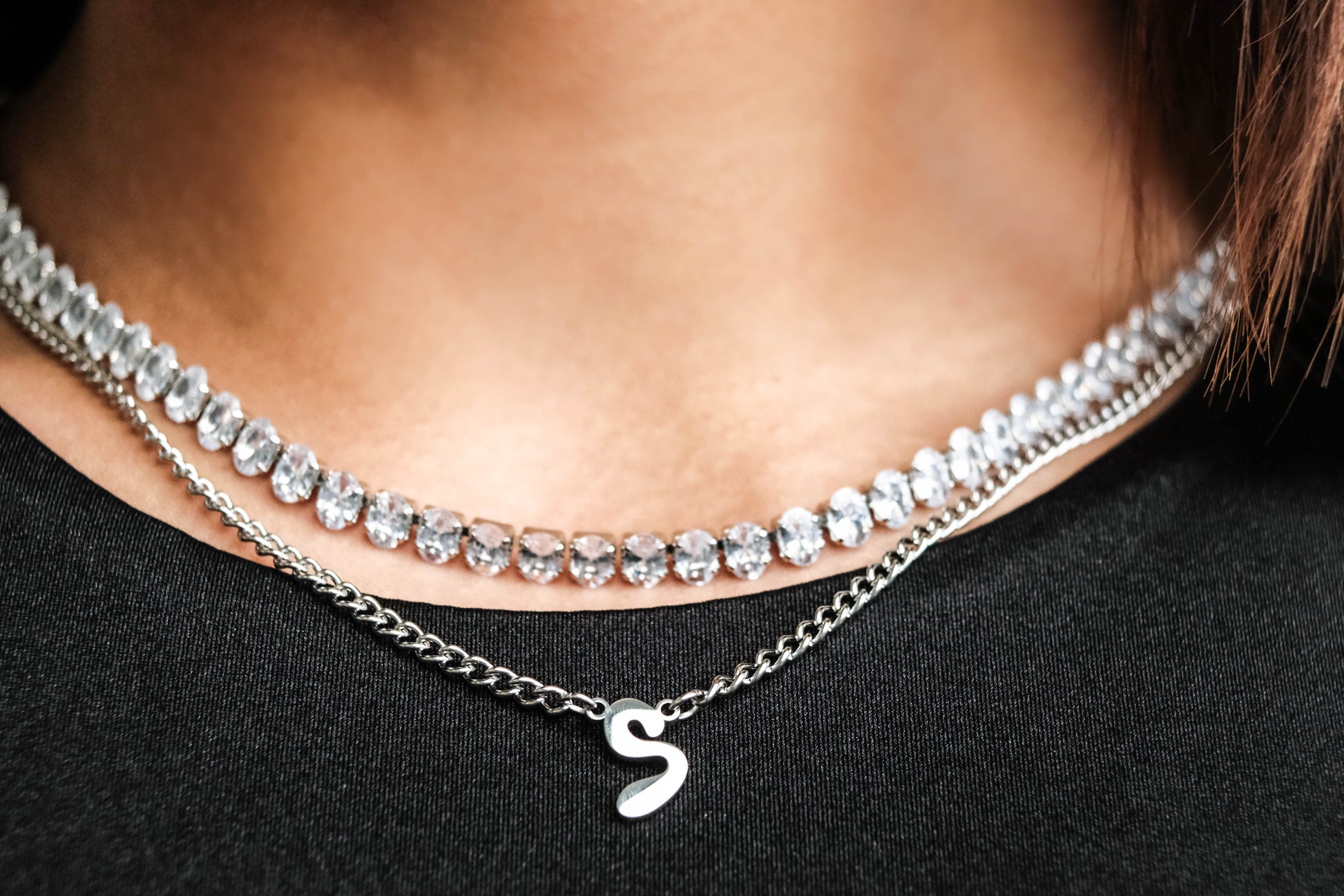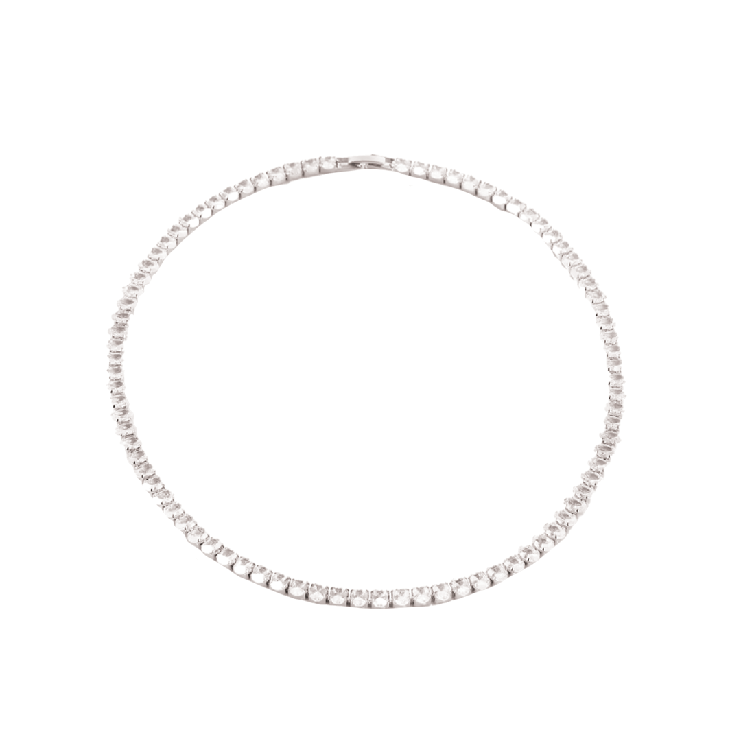 Dress up your style with out Hour Glass tennis chain set. Silver Plated with cubic zircon stainless steel and tarnish free. Set includes one necklace and a matching bracelet