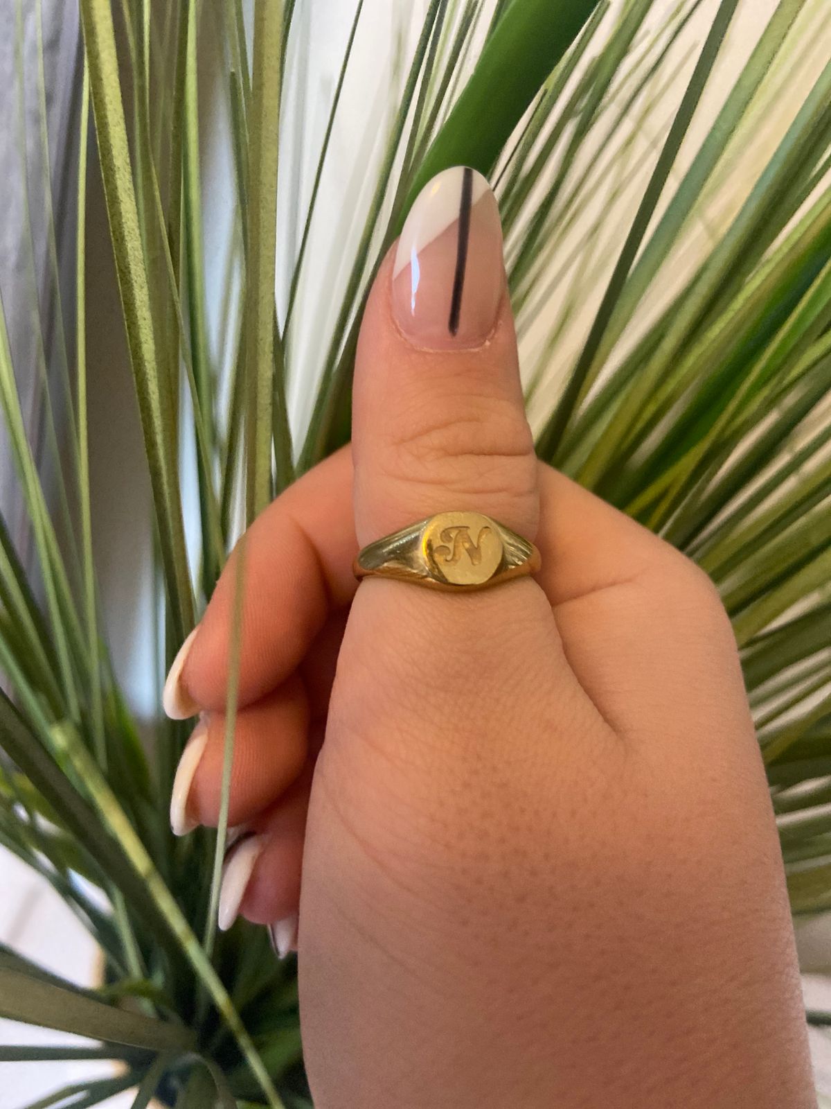 This ring is so simple and elegant while also trendy! I wear it on my thumb and the script initial is the cutest, I get so many compliments! And it doesn’t tarnish!