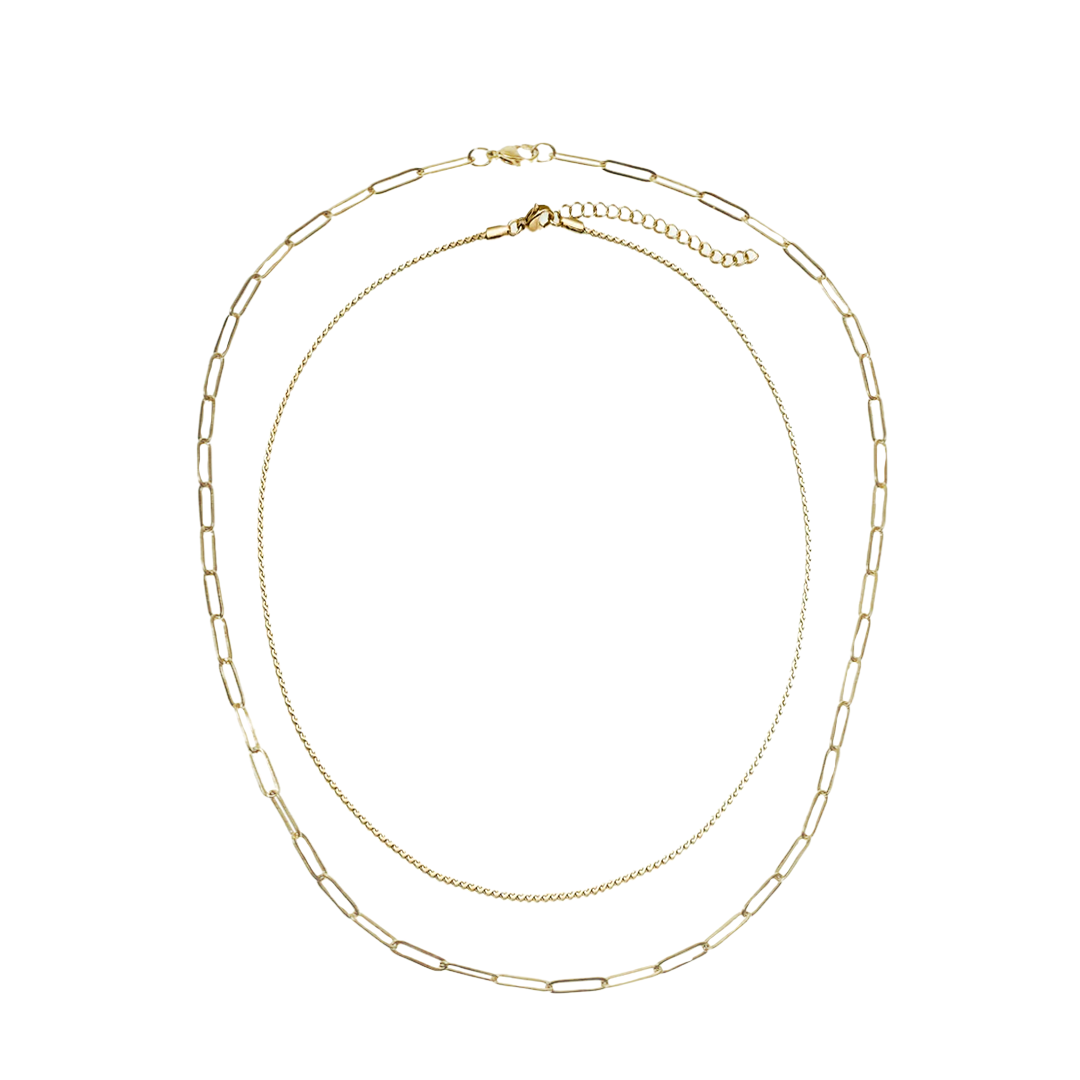 The Shawna Set consists of the Paperclip Chain and Delicate Rope Chain