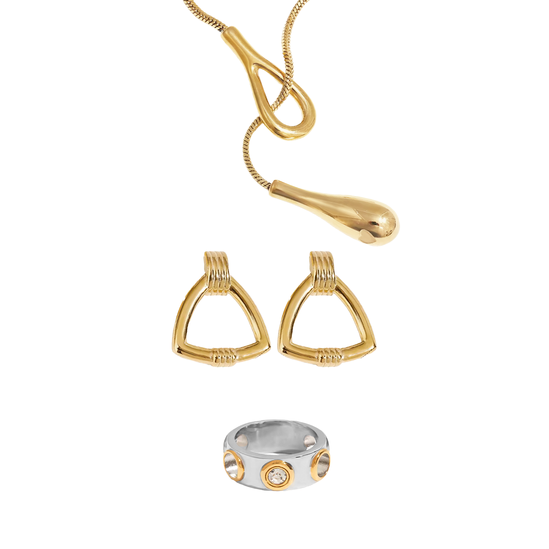 The Colt Set includes The Lasso Necklace in your choice of gold or silver, The Carter Band, and the Saddle Earrings in your choice of gold or mixed metal.