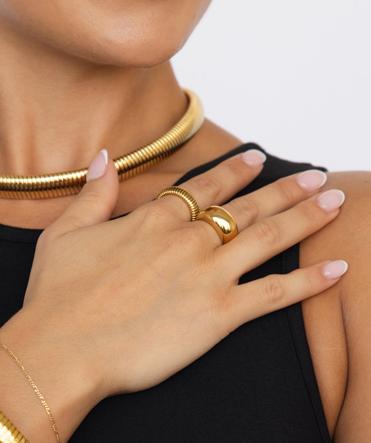 Sleek, stretchable, and understated, The Daily Band from VibeSzn is the perfect ring for everyday wear. The Daily Band is available in real 18k gold plating over stainless steel, meaning that—on top of being an incredibly versatile piece of your wardrobe—you'll never have to worry about it tarnishing.