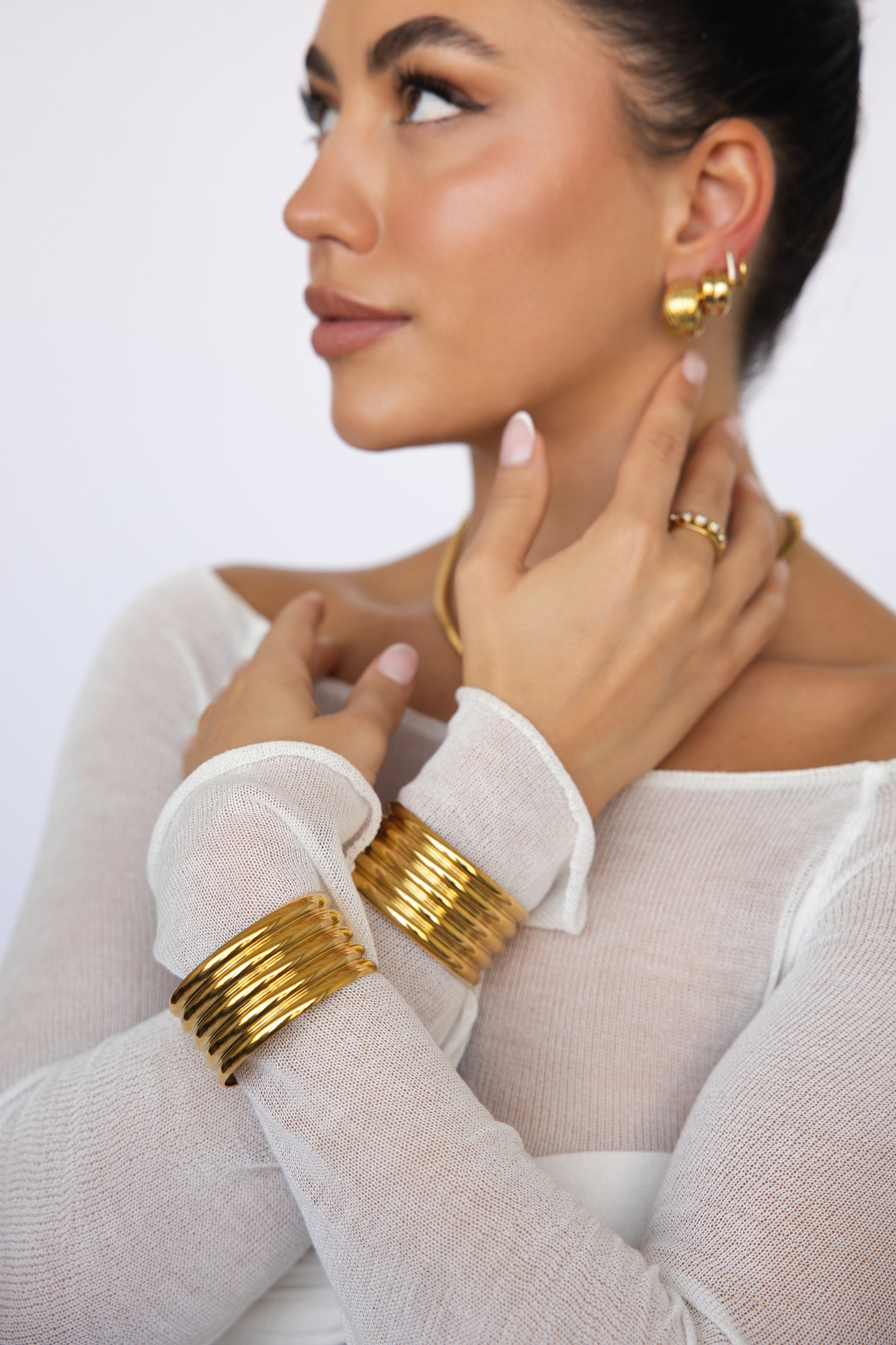 Hit it out of the park with the Knockout Cuff! Available in both gold and silver, this cuff is destined to be the MVP Stainless steel/18K gold and silver plated Water/sweat proof TARNISH FREE Avoid harsh chemicals, cleaning agents, perfume, etc. as that may cause discoloration as with any soft metals. Clean your jewelry regularly with a soft cloth to restore shine. Please check our FAQ page for details.