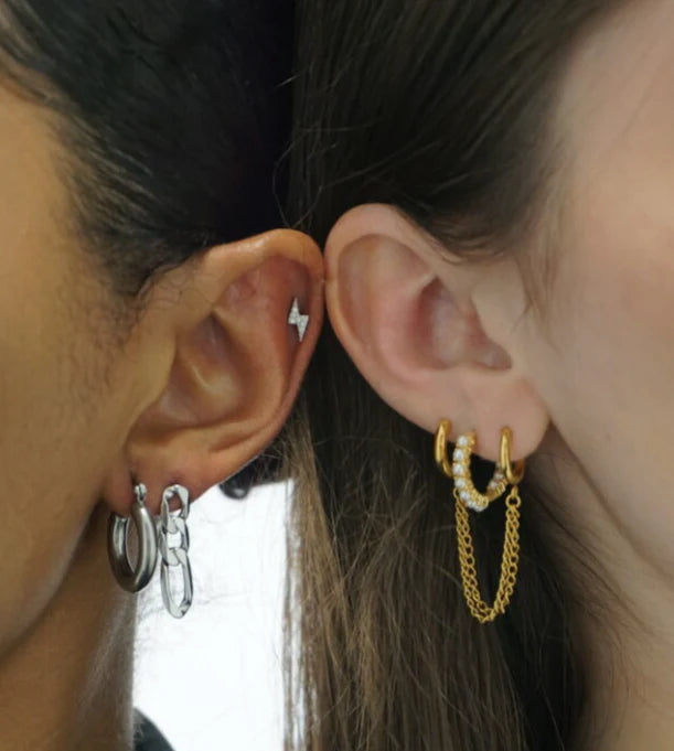 Calling all silver girlies! All of our top sellers - but tarnish-free Silver. The Silver Set includes the Bubble Initial Necklace, Dainty Herringbone Chain, Off Duty Hoops, Balloon Ring, and the Signature Link Bracelet.
