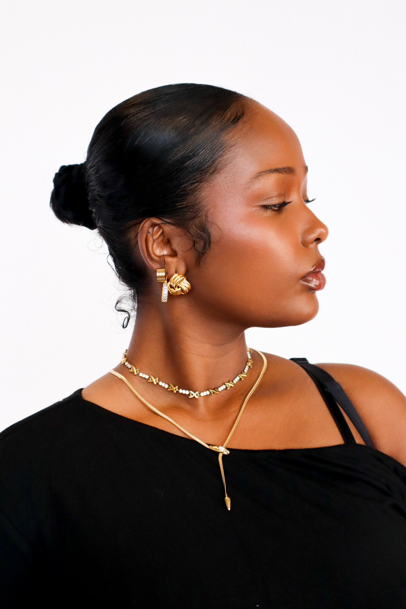 Inspired by a serpent’s grace, the Boa Necklace features a sleek lariat design with a sparkling crystal at its center. Crafted from tarnish-free, 18k gold-plated stainless steel, it’s the perfect blend of elegance and strength for any occasion.